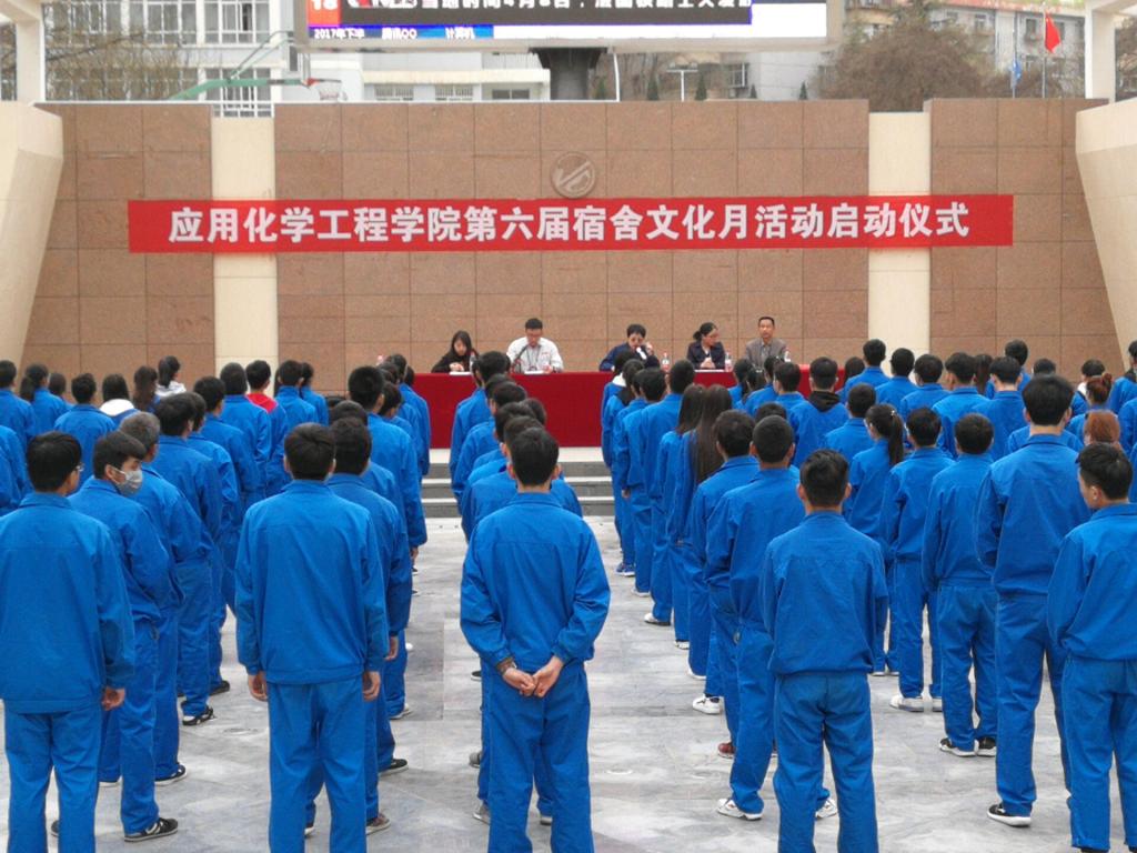为进一步推进宿舍文化建设工作,营造安全舒适的住宿环境,提升公寓管理水平,发挥学生公寓育人功能的作用。4月10日中午,应用化学工程学院在西区下沉式广场举办“建和谐文明宿舍,展应化青春风采” 第六届宿舍文化月活动启动仪式。学院领导、辅导员及各班级干部,宿舍长参加了启动仪式。活动仪式由唐靖助理主持。