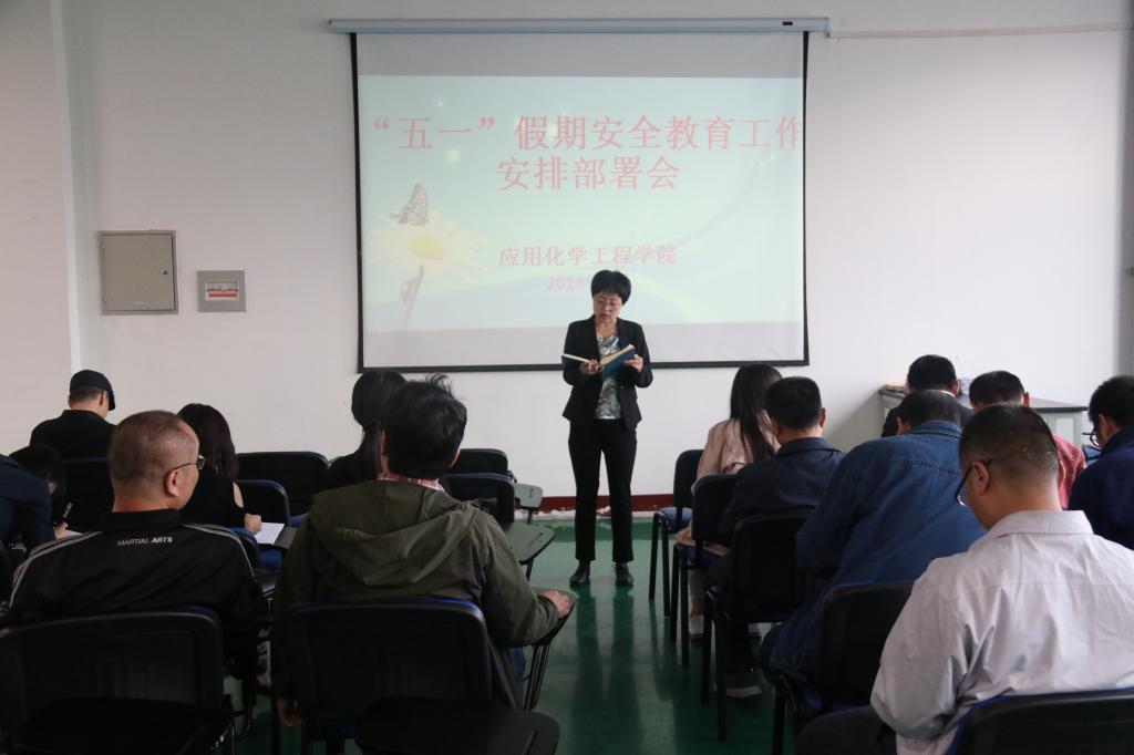 “五一”假期将至,为了使同学们度过一个安全、祥和的节假日。4月26日下午,应用化学工程学院在第四工业中心召开 “五一”假期学生安全教育部署会。院领导、辅导员及全体班主任参加了会议。