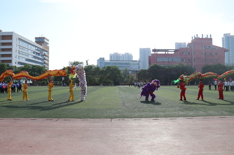 在激昂的《运动员进行曲》中,开幕式正式启动。院旗护卫队、裁判员代表队、各班级方队排着整齐的方阵,自信从容依次入场。入场式结束,全体师生起立,奏唱国歌。接着,在清新亮丽的音乐声中,舞龙舞狮,传统武术表演,海草舞和铁人舞等期待已久的文体表演精彩纷呈,充分展现了我院学生团结、坚韧、阳光、奋进的精神风貌,彰显了为梦想舞动青春的时代旋律。最后,由应用化学工程学院院长侯侠宣布运动会开幕,方阵、代表队依次退场,本次运动会竞技项目正式拉开帷幕。