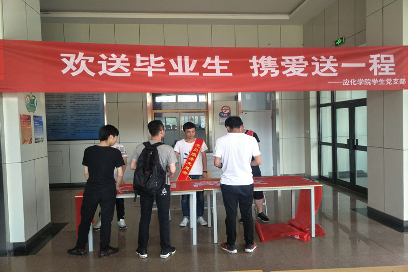 为帮助2018届毕业生顺利离校,让毕业生在离校时感受学院的关爱和温暖。近期,应用化学工程学院学生党支部组织开展了“欢送毕业生,携爱送一程”志愿者服务活动,为离校毕业生提供帮助。