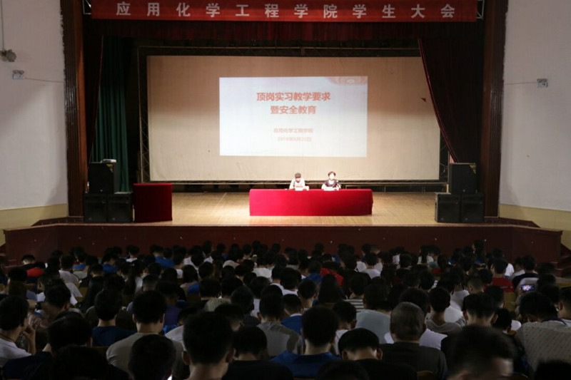 为了强化顶岗实习学生的教育管理,保证19届学生顶岗实习各项工作顺利进行,6月25日晚,应用化学工程学院在西区礼堂组织召开19届学生顶岗实习教育大会,学院党总支书记吴海霞、院长助理王建强、19届全体班主任及学生参加了此次大会。
