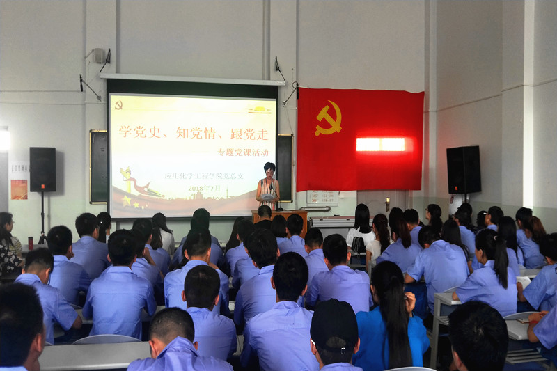 为庆祝中国共产党成立97周年,大力弘扬党的优良传统和作风,不断提升党员的理论水平,7月2日晚6:30,应用化学工程学院党总支在西阶三教室开展了“学党史、知党情、跟党走”专题党课教育活动,学院领导、教职工党员、学生预备党员及入党积极分子代表参加专题党课教育活动。