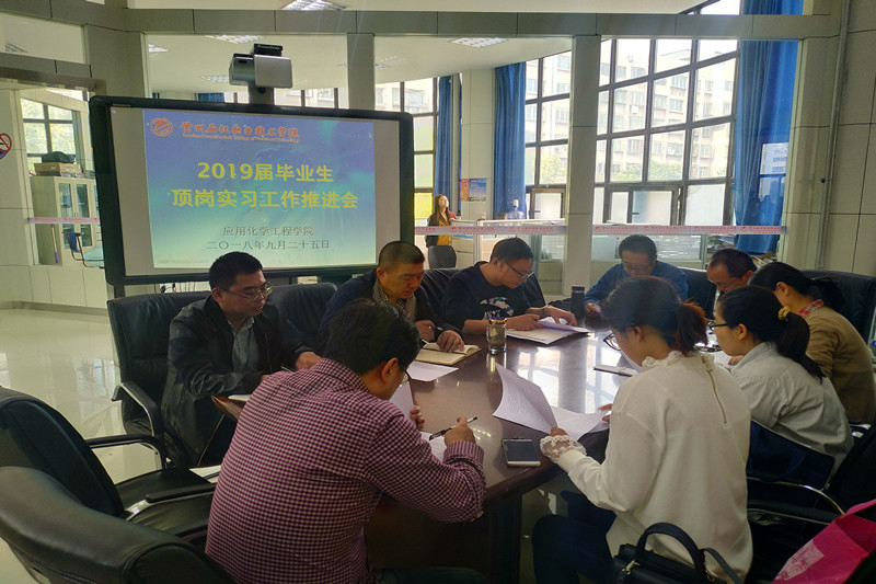 为了强化顶岗实习学生的教育管理,保证顶岗实习工作顺利进行,9月25日下午,应用化学工程学院在第四工业中心二楼办公室召开了2019届毕业生顶岗实习工作推进会,应化学院院长助理唐靖、2016级班主任及辅导员参加了会议。