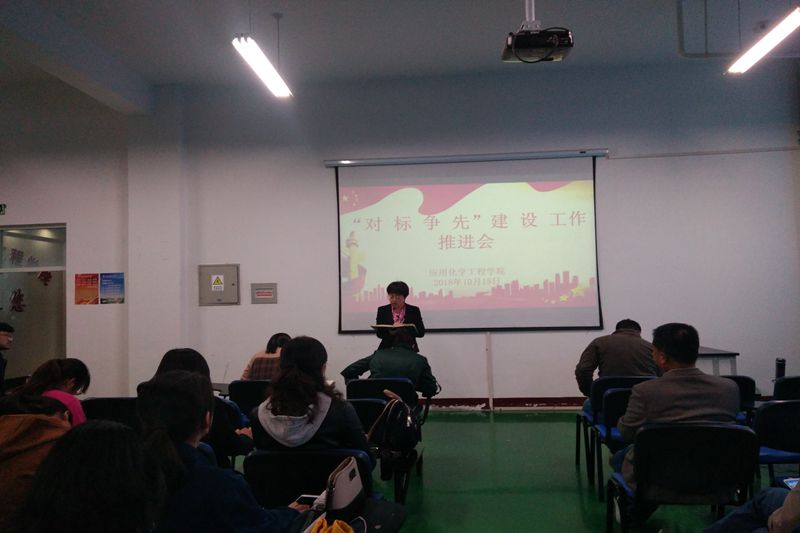 为全面贯彻落实习近平新时代中国特色社会主义思想和党的十九大精神,深入贯彻落实全国高校思想政治工作会议精神,坚持和加强党对高校的全面领导,推动全面从严治党向高校基层延伸,落实立德树人根本任务,培养德智体美全面发展的社会主义建设者和接班人,培养担当民族复兴大任的时代新人,根据学院党总支“对标争先”建设工作总体部署,10月18日下午,应用化学工程学院在第四工业中心二楼组织召开“对标争先”建设工作推进会,院领导,全体教工党员参加了会议。