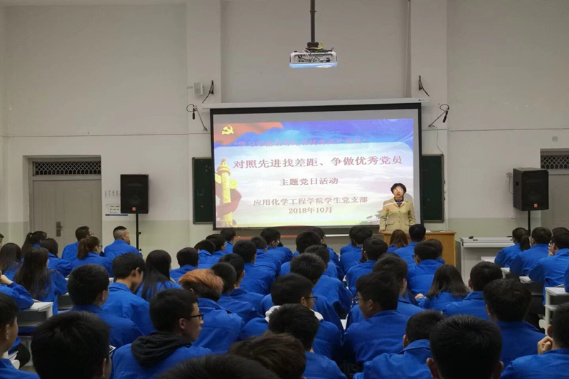 10月30日,应用化学工程学院党总支学生党支部在西主教西阶二教室组织学生党员、预发展对象、入党积极分子开展了“对照先进找差距,争做优秀党员”主题党日活动,深入学习了郑德荣等九名优秀党员的先进事迹。主题党日活动由党总支书记吴海霞主持。