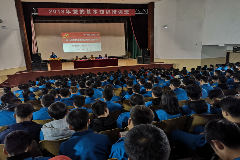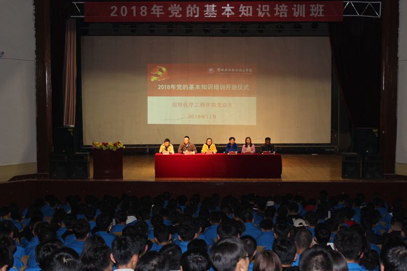 11月5日晚,应用化学工程学院在西区礼堂举行“2018年党的基本知识”培训班开班仪式暨第一次授课。学院党总支书记吴海霞及全体委员出席本次开班仪式,培训班510名学员参加专题讲座。开班仪式由院长助理唐靖主持。