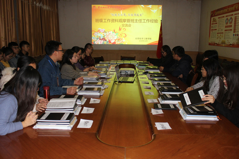 为进一步加强班级管理,创新班级管理的新方法、新思路,12月4日晚,应用化学工程学院在中和公寓二楼会议室举办以“经验分享、交流成长”为主题的班级工作资料展示暨班主任工作经验交流会。学院领导、全体班主任、辅导员参加了本次交流活动。