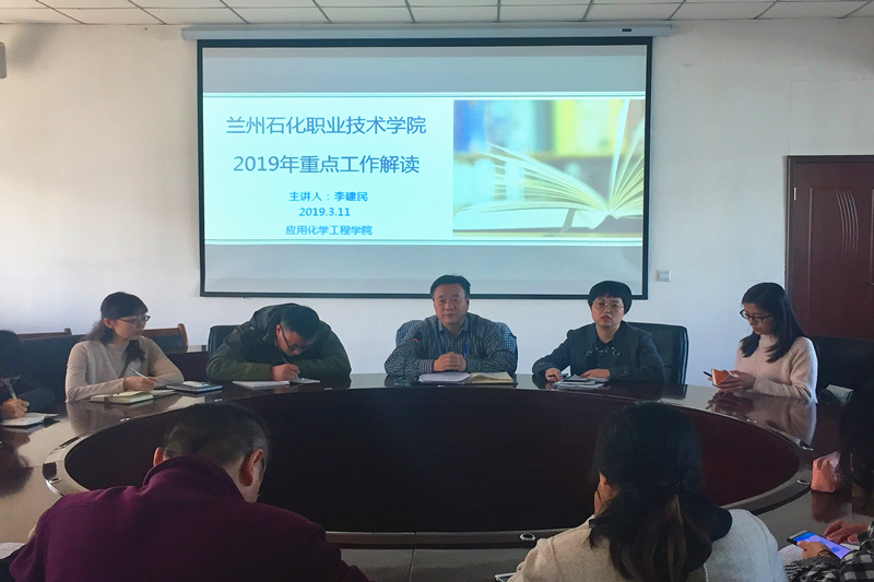 3月11日下午,应用化学工程学院在东主教圆桌会议室举办集体教研活动,邀请质量管理处处长李建民为全体教职工解读了兰州石化职业技术学院2019年工作要点。