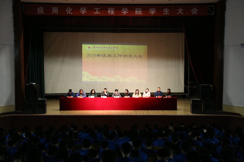 根据西固区征兵办及学院《关于开展兵役登记工作的通知》精神,使我院征兵工作稳起步,开好头,结合学院征兵工作计划,3月12日晚上,应用化学工程学院在西区礼堂召开2019年大学生征兵工作宣传动员大会,院领导、辅导员、班主任及全体在校生参加了此次会议。