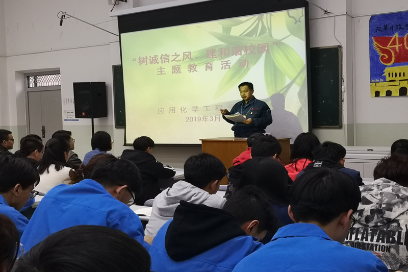 为认真贯彻学校2019年学生诚信主题教育活动安排部署,进一步提高学生诚信意识,构建和谐的诚信校园文化,3月24日晚,应用化学工程学院在西阶二教室开展了“树诚信之风、建和谐校园”主题教育活动。学院全体学生党员、2017级、2018级全体班团干部参加了此次教育活动。