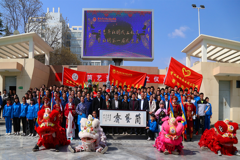 为更好的展现当代大学生的风采和活力,丰富我校广大同学的课余文化生活,更好地为非物质文化遗产事业的传承和发展服务,为非遗爱好者提供优秀的研讨、交流平台,应用化学工程学院于2019年4月14日上午在学校西区下沉广场举行“简艺斋”社团成立仪式暨第一届社团成果展。中国民协剪纸艺术委员会副主任叶长友,兰州市书法家协会西固分会名誉主席姚鹏英,甘肃省民协会员,平凉市泾川剪纸传承人梁红绢,兰州石化职业技术学院党委委员、副校长程小红,以及团委负责人,社团指导老师,应化学院全体师生共同观看成立庆典,领略非物质文化遗产的魅力。