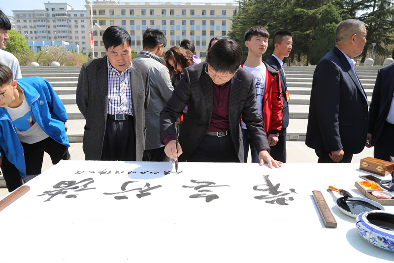 活动最后,各位领导嘉宾与全体演职人员合影留念。各位指导老师参观社团作品展览,据悉,本次展示活动征集到来自甘肃农业大学、兰州理工大学等8所高校的作品共计160余件,本校学生的作品共计180余件。嘉宾们对展出的作品悉心地进行了点评,书法家们还现场挥毫泼墨,为师生展示书法艺术之道,一种翰墨飘香、丹青溢彩的雅集气氛,流荡在校园里。