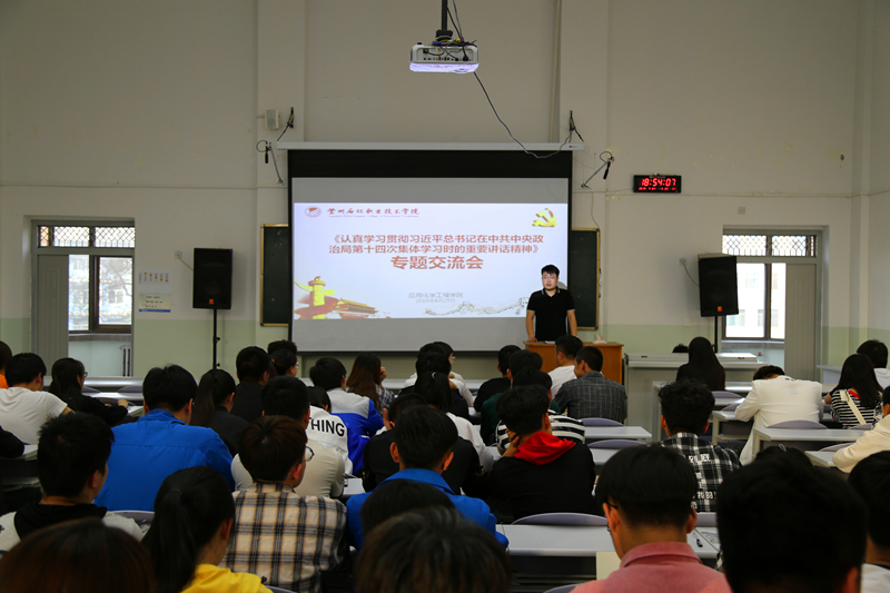 4月30日晚,应用化学工程学院在西主教西阶二教室组织学习习近平总书记在中央政治局第十四次集体学习时重要讲话精神。学生干部、各团支部部分学生代表共100余人参加了此次学习座谈会。