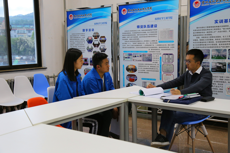 5月7日,新疆蓝山屯河化工股份有限公司副总经理廖鹏先生一行五人前来应化学院遴选2020届毕业生,学院领导、老师及应用化学工程学院、石油化学工程学院、机械工程学院、电子电气工程学院、信息处理与控制工程学院、国际商务学院相关专业的学生在西区第四工业中心参加了企业宣讲会。