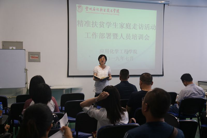 会上,吴海霞书记首先传达了《兰州石化职业技术学院关于开展2019年精准扶贫学生家庭走访活动的通知》要求,并结合应用化学工程学院2019年暑期精准扶贫学生家庭走访活动实际,围绕国家“精准扶贫”、“精准脱贫”政策及我院2018年精准扶贫学生家庭走访活动中存在的问题,对全体家访工作人员进行深入细致的培训,接着为我院学生资助工作的全面开展、宣传资助政策、明确家访对象、制定实施方案等进行了安排部署。最后就我院如何开展好2019年精准扶贫学生家庭走访活动提出了几点要求:一是在家访前对所访学生家庭情况进行尽可能深入的了解,做到精准施策;二是以家访为契机,在座谈和讨论中积极宣传我校资助政策,使家访活动成为推动资助工作、提升资助水平的有效载体,将家访活动中好的做法、经验和亮点工作进行及时有效的宣传报道;三是针对家访过程中学生家长提出的意见和建议,制定整改措施,在家访结束后要形成专项总结材料并及时上报。