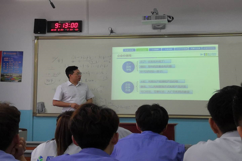 根据恒力现代学徒制班人才培养方案的要求,为了让学生在学校就能了解企业文化、管理理念和岗位技能。近日,恒力石化(大连)有限公司派出人力资源部高磊、王爽两位讲师为我院恒力现代学徒制181班讲授了《企业文化》课程。