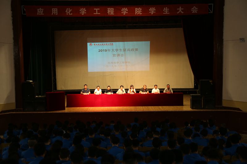 8月28日晚上,应用化学工程学院在西区礼堂召开2019年新学期大学生征兵工作宣传动员大会,院领导、辅导员、班主任及全体在校生参加了此次会议。