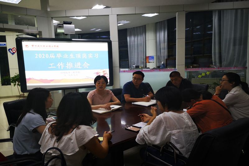为了强化顶岗实习学生的教育管理,保证顶岗实习工作顺利进行,8月29日晚,应用化学工程学院在第四工业中心二楼办公室召开了2020届毕业生顶岗实习工作推进会,应化学院党总支书记吴海霞、2017级班主任及辅导员参加了会议。