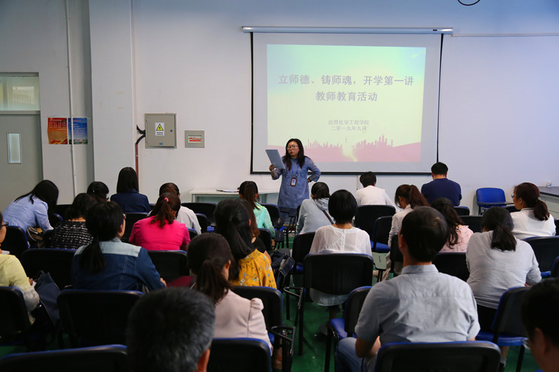 9月2日下午,应用化学工程学院院长侯侠组织全体教师在第四工业中心二楼开展了“立师德、铸师魂,开学第一讲”教师教育活动。