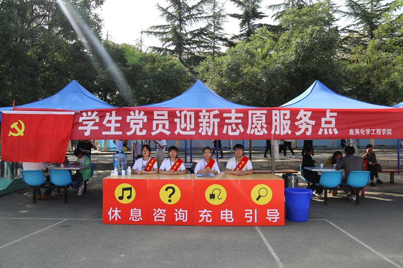 迎新现场,校党委书记周兴中、校长高溥及其他所有校领导、处室相关领导都亲临应用化学工程学院迎新现场,详细了解和询问新生报到情况,检查指导应用化学工程学院做好各项服务工作,保障新生顺利入学;并深入学生寝室,看望慰问新生及家长。