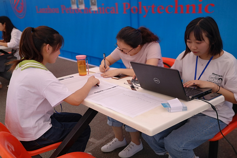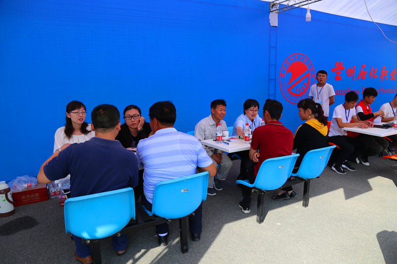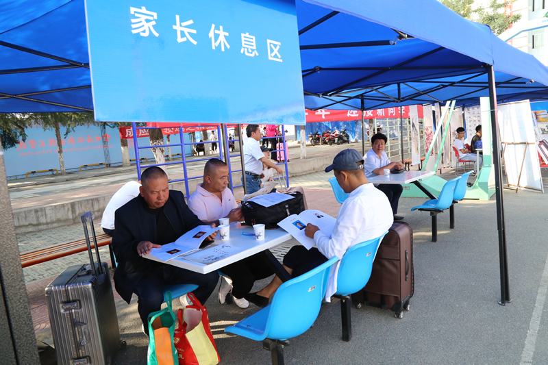 家长休息区服务站点,为家长提供有手机充电、免费饮用水、爱心雨伞、免费医药箱等服务,并设立视频播放区,播放内容为《兰州石化职业技术学院宣传片》《应用化学工程学院宣传片》等。还为家长提供应用化学工程学院优秀校友名录、班主任联系卡等,为家长全方位的展示应用化学工程学院的特色。
