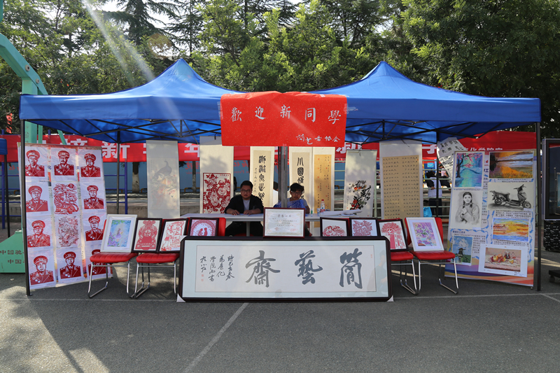 在迎新现场“简艺斋”社团设立了展览区,普及、弘扬中华传统文化,让新生感受校园多彩的文化生活,并表示以后要加入感兴趣的社团、培养自己的爱好,锻炼自己的能力,成为一个多才多艺的应用化学工程学院学子。