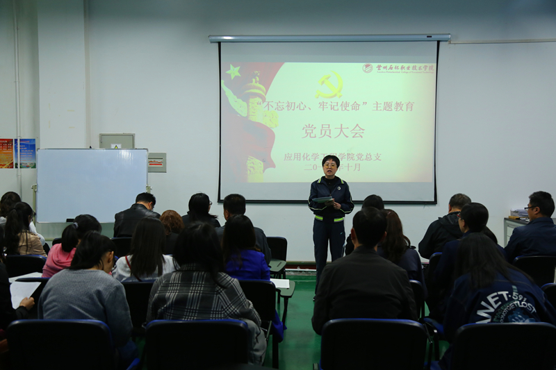 应用化学工程学院党总支于10月9日下午在第四工业中心二楼召开“不忘初心、牢记使命”主题教育党员大会,并进行交流发言。