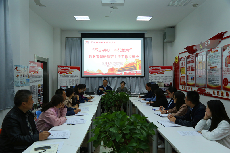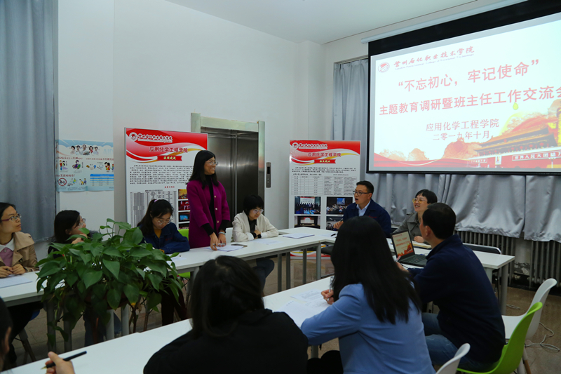 为进一步加强班级管理,创新班级管理的新方法、新思路,11月16日晚,应用化学工程学院在第四工业中心二楼会议室举办了举办“不忘初心、牢记使命”主题教育调研暨班主任经验交流会。全体班主任、辅导员参加了本次交流会。