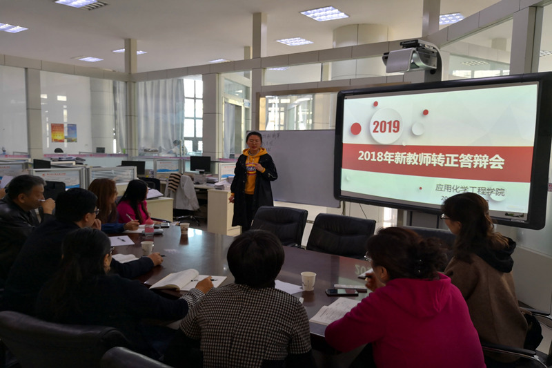 新教师是学校教师队伍的后备力量和生力军,也是应用化学工程学院人才培养工作的重中之重。为了检验2018年引进教师入职一年多来的教育教学成长情况,促进新教师专业成长,应用化学工程学院于11月11日下午在第四工业中心二楼举行了新教师转正答辩会,学院领导、督导、新教师指导教师及2018年新教师参加了答辩会。