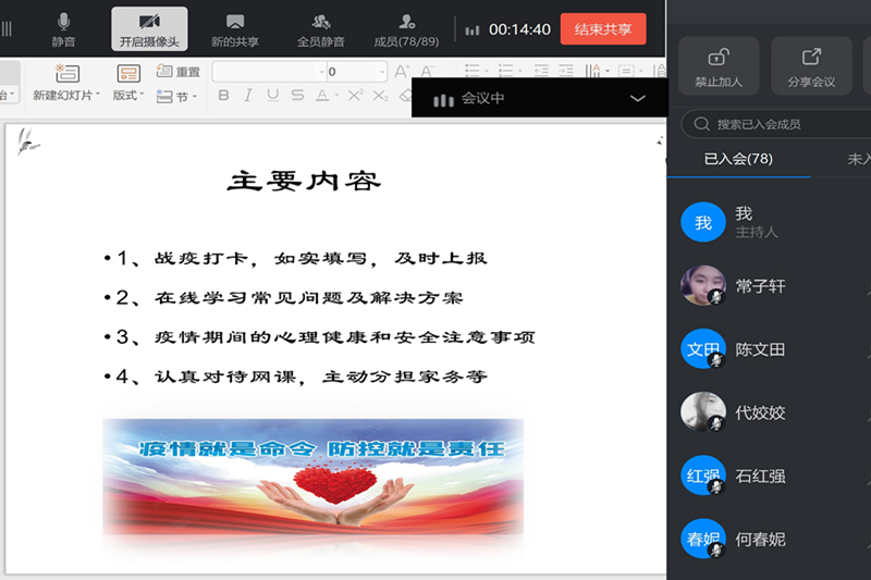 通过线上视频交流,对学生进行疫情防控工作和思想引领工作,拉近了师生之间的距离,让学生们感受到“无论你身在何处,老师们时刻牵挂”,虽然隔着屏幕,但大家倍感亲切,师生们积极互动,效果良好。