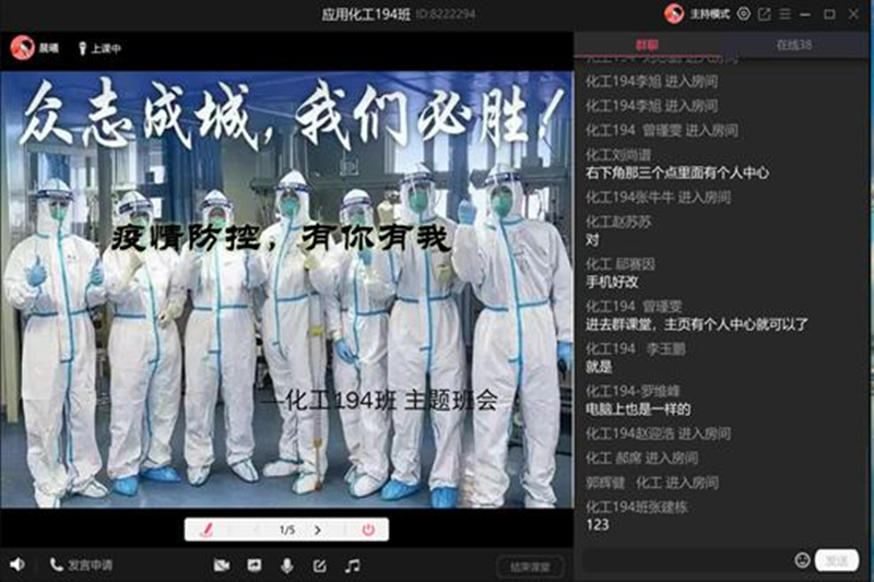 各班主任们精心准备班会策划方案,搜集视频、图片等素材,充分运用钉钉、QQ直播等网络平台,向同学们讲解疫情防控知识,强调认真填写健康打卡,使学院充分了解同学们在家的真实健康状况,鼓励大家克服困难,在返校之前务必保证自身安全,同时提醒同学们少出门,出门戴口罩,注意卫生勤洗手,鼓励学生坚持运动,锻炼身体,提高自身免疫力;了解同学们在线学习中存在的问题和困难,并指导学生们规划好在家的学习时间,按时参加线上教学,配合任课老师达到预期效果。在各班的主题班会中,班主任还组织大家开展线上讨论,帮助学生调整心态,更好地迎接新学期开学返校。
