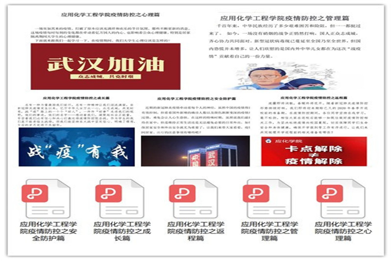 为助力早日打赢新冠肺炎疫情防控阻击战,做好延期开学期间学生日常教育管理工作,应用化学工程学院多措并举开展线上【疫情防控专稿】推送活动,扎实推进疫情防控工作有效落实。