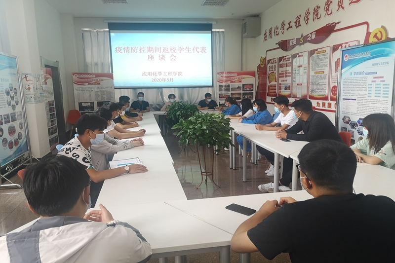 为深入了解疫情防控期间2018级学生返校后的学生思想动态,以及在教学、学习、生活等方面的诉求,传达校院对返校学生的关心关注,及时有效地为学生提供优质服务,5月22日中午,应用化学工程学院在第四工业中心二楼召开2018级返校学生代表座谈会。学院党总支书记吴海霞、院长助理唐靖及全体辅导员参加会议。