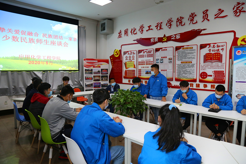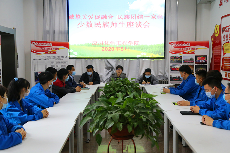 为加强民族团结工作,更好地了解少数民族师生的学习生活情况,关心和解决他们遇到的问题及困难,5月26日中午,应用化学工程学院在第四工业中心二楼会议室召开“诚挚关爱促融合、民族团结一家亲 ”少数民族师生座谈会。院领导、辅导员以及2名少数民族教师和18级少数民族学生参加本次座谈会。