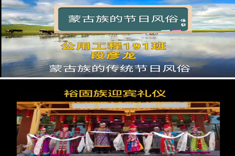 为丰富我院学生的课余生活,弘扬传统文化精髓,增强学生爱国热情,近日,应用化学工程学院举办了一场线上“体验民族风情,弘扬民族文化”小视频展示活动,精彩呈现了各个民族的异域风情,让学生们相互了解风俗文化,增进友谊,促进民族情感交融。