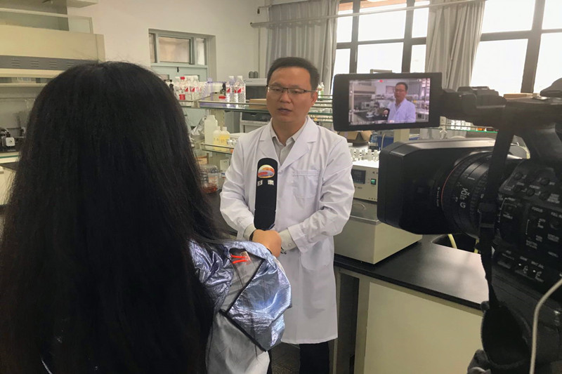 8月31日上午,该产品研发事迹应甘肃省电视台文化影视频道邀请接受采访,学校党委副书记黄义仿和应化学院教师王刚博士接受了专访。学校副校长王继元、宣传部部长兰炜、科技处、应用化学工程学院相关负责人和老师参与接待。