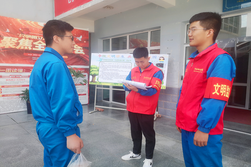 一是深入开展“争做文明学生,共创文明校园”主题教育活动。充分利用召开主题班会、班级QQ群、公寓板报、宣传横幅、警示标语、信息公布栏等平台,广泛开展宣传教育引导,强化学生习惯养成教育,增强爱护公共环境卫生的公德意识,强调文明学习、文明用餐、文明住宿等文明行为习惯,希望同学们从学习到生活、从小我到大我,文明修身,让文明之风吹进每位同学的心里。