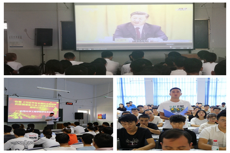 9月11日中午,应用化学工程学院学生第一、二党支部组织在校学生党员及部分入党积极分子在西阶二教室观看习近平总书记在全国抗击新冠肺炎疫情表彰大会重要讲话及学习分享交流活动。
