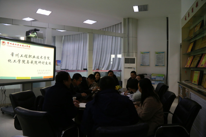 12月21日在第四工业中心二楼,常州工程职业技术学院化工学院院长李东升一行6人来我院学习交流,院长侯侠、党总支书记吴海霞、相关教研室主任参加了交流会。