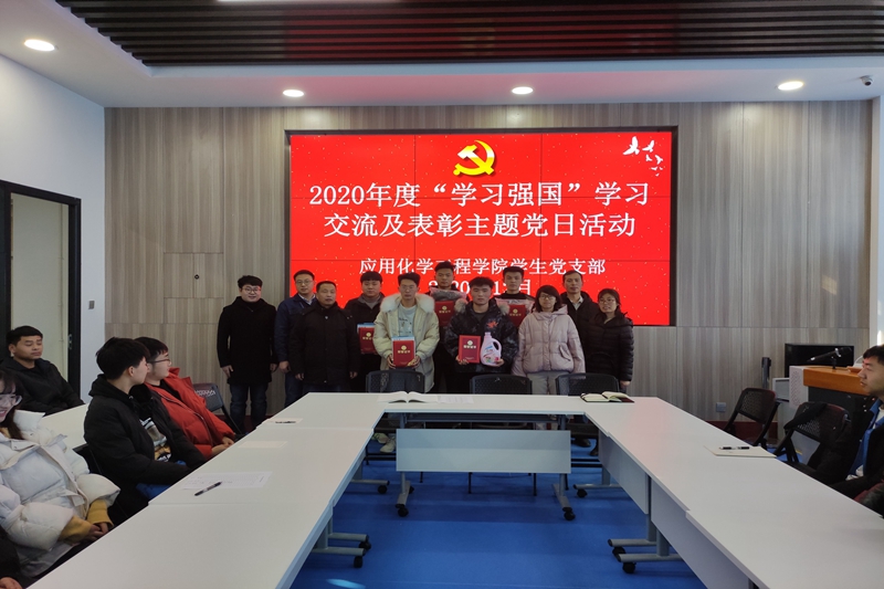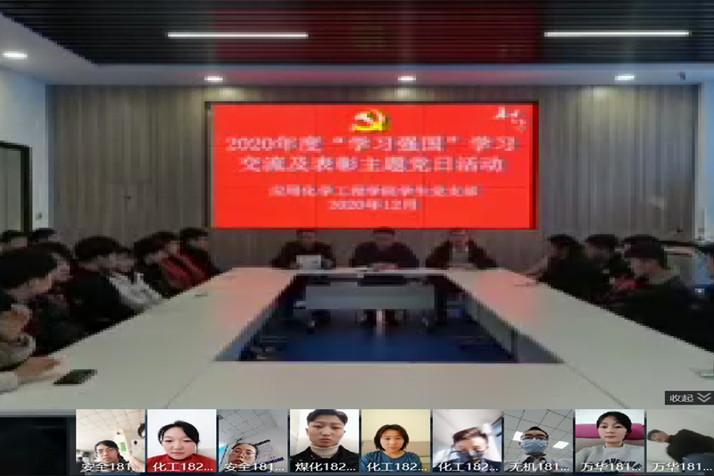为树立榜样,表彰先进,切实增强学习强国学习实效,12月23日中午,应用化学工程学院学生党支部在第四工业中心二楼会议室,利用QQ平台,采用线上线下相结合的形式,开展了学习强国学习交流及表彰主题党日活动。全体学生党支部成员、学生党员及部分入党积极分子参加了本次活动。