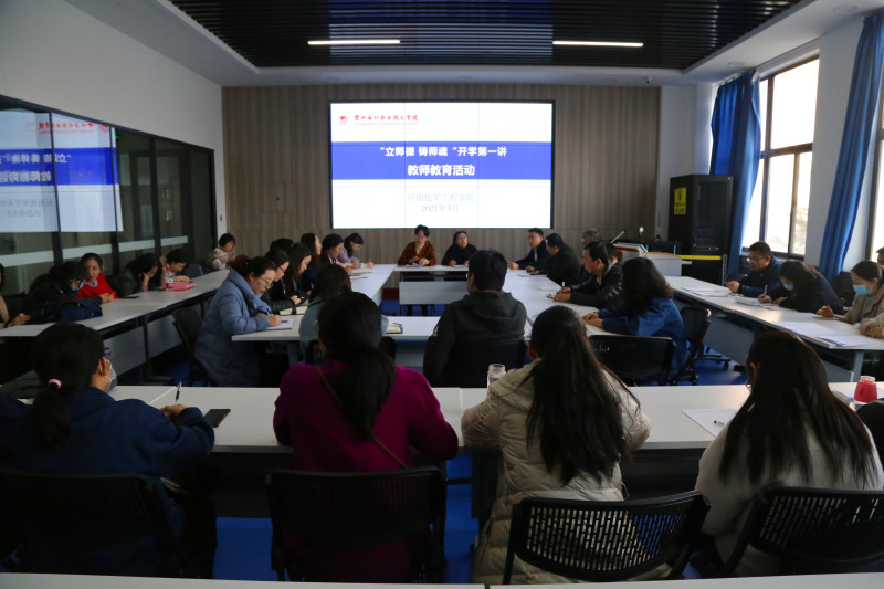 为深入贯彻落实学校关于开展“立师德铸师魂开学第一讲教师教育活动”的工作要求,进一步加强教师师德师风建设,提高教师的法制意识,规范教师职业行为,落实立德树人根本任务,3月1日下午,应化学院组织全体教师开展了开学第一讲教师教育活动。