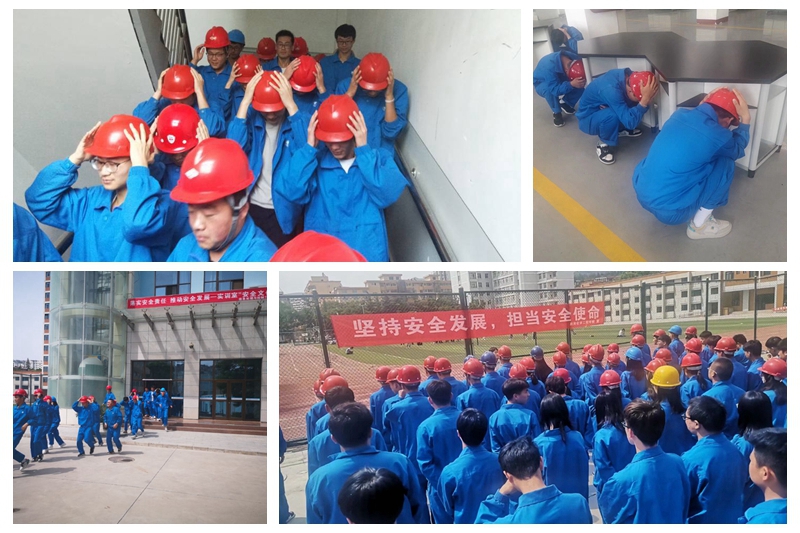 实施演练之前,学院制定了演练方案,吴海霞为大家讲解了防震避震的基本常识,逃离路线及每层楼梯口工作人员职责等进行了周密部署。10时30分,随着阵阵急促响亮的“地震警报”信号哨音响起,各实训班级立即停止了授课,授课教师转而成为实训现场避震演练负责人,组织学生按照活动的具体要求进行避震,学生在最短的时间内完成双手抱头、蹲地、蜷伏于实训室小方桌、中央控制台下等一系列动作;1分钟后,指挥员又发出“紧急疏散”信号,学生在实训老师、负责各楼梯口辅导员的组织下,迅速有序地按照事先指定的“逃生路线”撤离疏散,从信号发出到学生完全撤离疏散到安全区域用时不到2分钟。整个疏散演练过程迅速、有序,未发生任何意外,达到了预期的目的,取得了圆满成功。