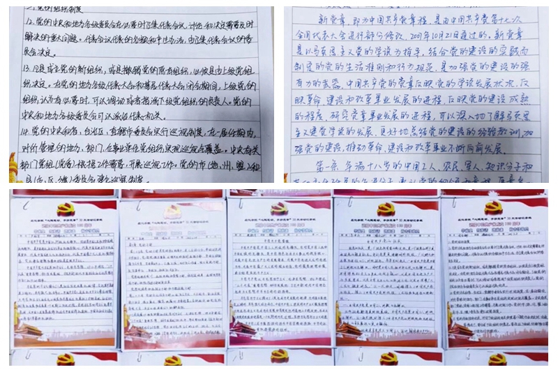 “一撇一纳笔尖过、一字一词心中铭”。本次手抄党章活动活动从5月15日开始,为期30天,要求学生党员发展对象在抄写党章的过程中,认真书写,深入思考、细心体会,坚持每日动手抄、动脑学、动心记,真正做到逐条、逐句、逐字学党章,切实理解党的纲领,牢记入党誓词,牢记党的宗旨,牢记党员义务,引导学生党员发象自觉尊崇党章、遵守党章、维护党章,坚定理想信念,做到对党章内化于心,外化于形。在抄中学,学中悟。每一位党员发展对象每日将当天需要抄写的党章内容(450字左右),或撰写学习心得体会不少于500字,书写完成后在书写的笔记上留下个人基本信息(落款注明:班级、姓名、日期及页数),并将抄写内容用手机拍照,以“晒图”的形式发至“学生党员QQ交流群”公开展示,学生党支部坚持每天对QQ平台的反馈进行统计,每周第一天记录用彩印书,后6天用普通用纸书写,每周以班为单位上交所在党支部。同学们严肃认真,一笔一划一字一句抄写党章,每当写到深刻之处便停笔思索,可谓字迹流淌在笔尖,思想已涌入心田。活动结束后,学生党支部将以主题党日活动为契机,通过交流感悟、展示作品等进一步增强学习效果。