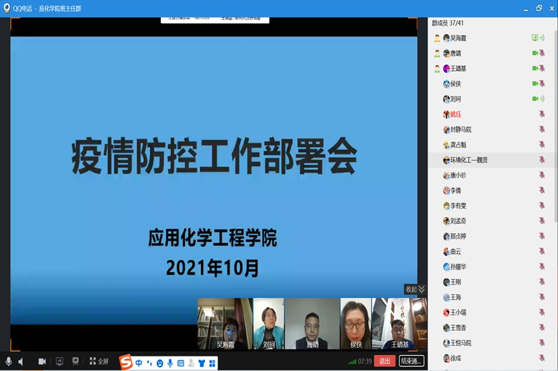 为进一步做好疫情防控工作,快速有效阻断疫情,保障我院学生的身体健康和生命安全,按照省教育厅相关会议精神以及学校疫情防控工作领导小组工作会议要求。10月22日,应用化学工程学院在线上组织班主任召开疫情防控工作部署会,学院领导、辅导员、全体班主任参加此次会议。