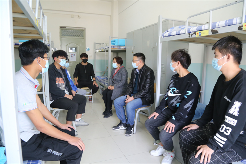 学院领导先后来到学生入住的明德、好源、三号楼等公寓,每到一间宿舍,学院领导贴心询问同学们在校园封闭期间线上上课、网络保障、生活物品、餐饮服务等方面的情况,叮嘱同学们要认真上好每一节课,要打开窗户多通风、勤洗手、出门戴口罩、不聚集、不扎堆、坚持1米线,健康适量开展户外活动,保证良好的学习和生活状态,依照少接触是安全的防疫原则,倡导同学们不网购、不点外卖,保持宿舍清洁卫生,按时完成每天的个人信息填报工作,严格遵守疫情防控期间学校的各项管理规定,有困难、问题随时向学院辅导员、班主任提出来,由学院及时协调处理。同时,也要及时向家长交流自己的学习、生活动态,让家长放心。