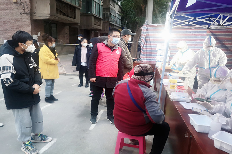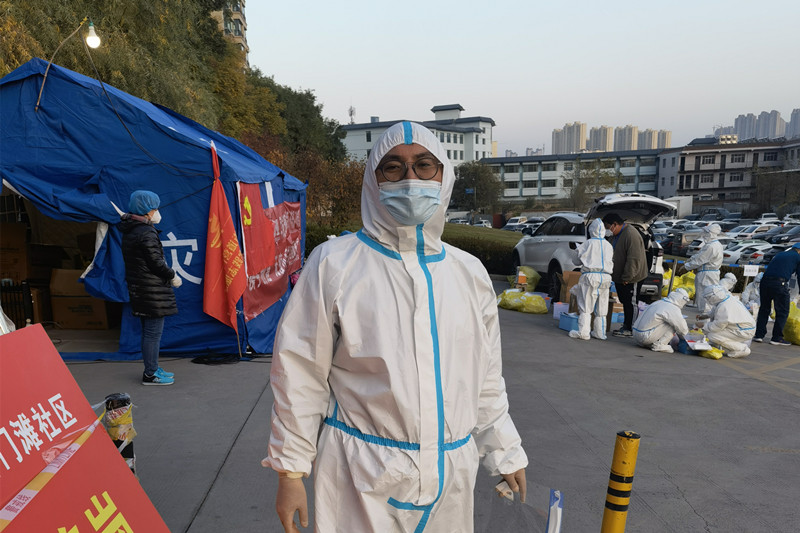 余文鑫老师是应化学院的教学秘书,在此次疫情防控战初始之际,由于他所居住的小区出现了一例确诊病例,导致小区全面封锁,防疫工作十分繁重。余老师第一时间积极响应政府号召,自愿加入到七里河区恒大名都小区的志愿服务岗,主动申请到小区门口站岗、入户做核酸、为居民送生活用品和食物,常常一天要帮忙搬运几百斤的防疫物资,为疫情防控工作贡献自己的力量。他每天工作12小时,从不怕苦、从不怕累,他经常说:“我能为我们居住的家园贡献自己的力量,再苦再累也很高兴!”