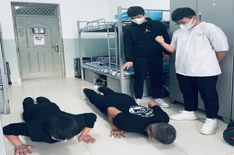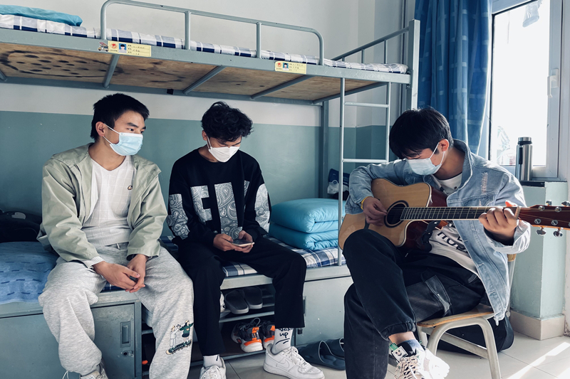 活动中,同学们在做好个人防护措施的同时,群策群力、就地取材、各展所能,在干净、整洁的宿舍内,承载青春梦想的小细节里,蕴含着他们的心灵手巧;温馨的视频里,表达着他们的和睦友善;拿出自已的看家本领,积极开展各类锻炼,展现出他们青春的朝气与活力以及同心抗疫的信心和决心。明德公寓711宿舍开展一场激烈的象棋大战正进入白热化阶段,双方横马跳足,车攻炮轰,你来我往,难解难分,招招紧逼,让观看的同学们感受到了象棋的魅力,更体会到了智慧与谋略的比试;有的宿舍,同学们围在一起,弹吉他,唱着歌曲,用音乐来表达愉悦的心情,尽显青春风采,在悠扬音乐的带领下,“抗击疫情,寓你同行”;更多宿舍同学们则立足宿舍现有条件,进行俯卧撑、仰卧起坐、扳手腕、举杠铃、深蹲跳起等健身项目竞赛,有限的场所,青春活力无限,同学们将各种体育锻炼开展得如火如荼,并乐在其中。