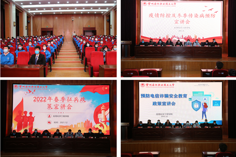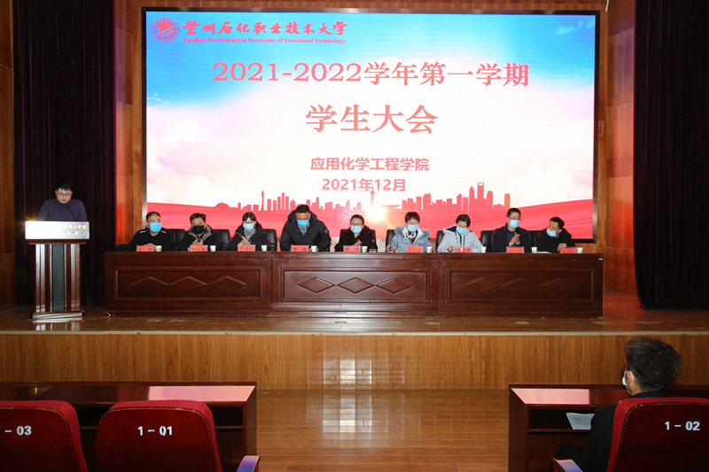 为表彰先进、发挥榜样的示范作用,同时为进一步优化学风,提高应用化学工程学院学子学习的主动性和自觉性,弘扬诚实守信精神。应用化学工程学院于12月24日晚在西区报告厅及钉钉直播群,采用线上线下相结合的形式,召开2021-2022学年第一学期期末总结表彰暨期末诚信考试动员学生大会。应用化学工程学院全体领导及辅导员、班主任,应化学院全体学生参加了此次会议。