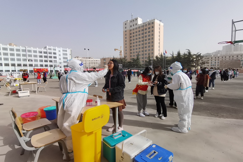 为最大效率协助完成核酸检测任务,志愿者们提前来到工作地点,进行详尽的分工布置和安全说明。在检测过程中,他们统一带着党徽、身穿着红色马甲、佩戴党员志愿服务者授带、口罩,穿梭于各个检测现场之间,维护着核酸检测秩序,并提醒前来检测的同学们做好相关防护,出示相关证件,全力配合现场检疫人员的工作。尽管检测现场的工作十分辛苦,但是志愿者们仍然坚守岗位、各司其职,没有一名志愿者提前离岗,尽显学生党员、入党积极分子的担当和责任。在检测结束后,志愿者们纷纷表示:通过这次志愿服务更加体会到了一线抗疫工作者们的辛苦付出,疫情就是命令,防控就是责任,身为党员和积极分子更应该冲在前列,发挥先锋模范作用,勇当“战疫排头兵”。