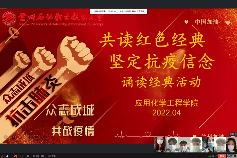 为弘扬中华传统文化,培育爱国情怀,感悟建党百年的革命精神,应用化学工程学院于4月3日举办了“共读红色经典,坚定抗疫信念”线上诵读经典活动,忆峥嵘岁月,诵百年风华,共读红色经典,坚定抗疫信念。